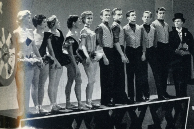 The major dance number was the funeral of one Lord Mortlake. For Dancing Times this was “a nightmare ritual taking the form of a rowdy alcoholic rock’n’roll orgy....the cigar-smoking clergyman wears a garment more like a tutu than a surplice.” Its critic, Eric Johns, praised “an excellent cha-cha number which captures the very beat of Fleet Street” along with ‘On Ice’, “a clever satire on smart women journalists, inspired by those absurd attitudes struck by models on the fashion pages of the glossy weeklies.”